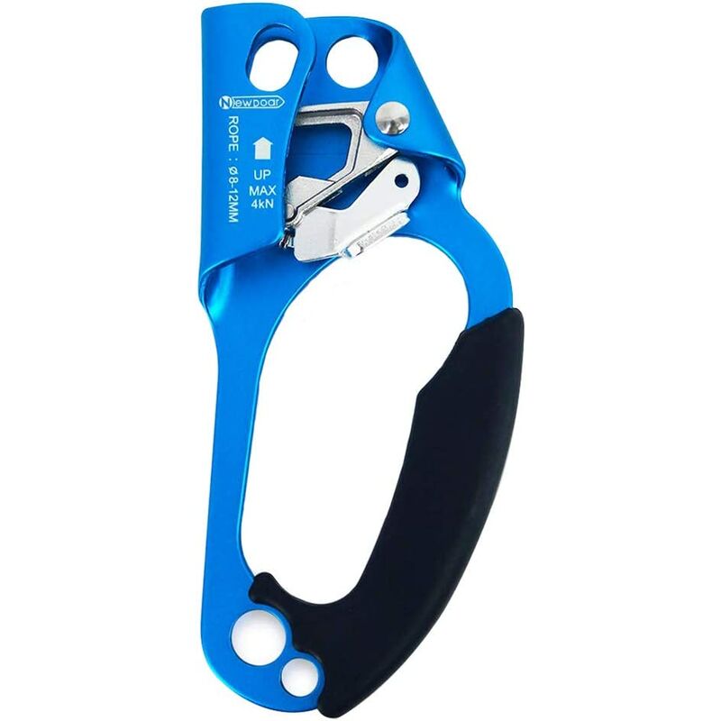 Garanzia di sicurezza - : CE 1019-435 EN 567:2013 ne garantisce la sicurezza. [Ascender leggero]: il telaio in lega di alluminio è leggero ma resistente, pesa solo 237 g (0,52 libbre) [Ottima presa]: la comoda impugnatura in gomma aggiunge attrito e protegge la mano dello scalatore. [Forte camma in acciaio inossidabile]: realizzata in acciaio inossidabile, antiruggine e anticorrosione, può gestire la maggior parte situazioni e servizi per lungo tempo. [Fori multipli]: per collegare moschettoni e cinturini. 2 fori di fissaggio sui lati superiore e inferiore del bloccante per consentire all'operatore di utilizzarlo con saggezza. Descrizione del prodotto Allevatore manuale Compatibilità corda: 8 ~12mm Il bloccante manuale è ampiamente utilizzato per l'arrampicata sugli alberi, l'arrampicata su corda singola (arrampicata SRT) e il sistema di tensione/rigging/trasporto/puleggia. Principio di funzionamento: Le camme installate consentono al dispositivo di muoversi agevolmente lungo la corda