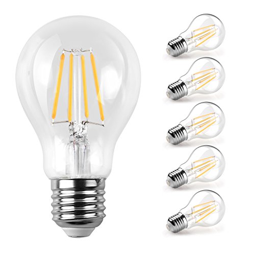 Ascher Lampadina LED E27 a Filamento, 6W, Pari a Lampadine Incandescenza da 60W, 800LM, Luce Bianca Calda, 2700K, Lampadine a LED, Attacco E27 edison standard, Confezione da 5 Unità