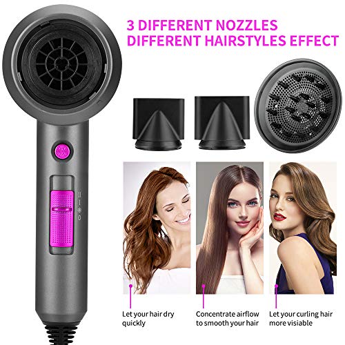 Asciugacapelli professionale con diffusore,1800W Hair Dryer asciugacapelli agli ioni di litio, asciugacapelli rapido con ugello per lo styling, silenzioso 3 velocità e 3 calore freddo, caldo