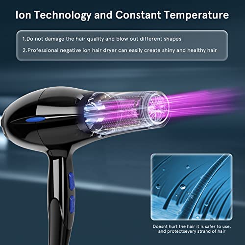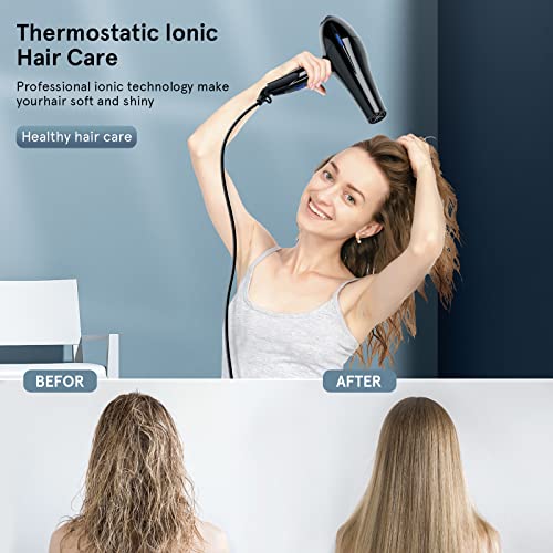 Asciugacapelli Professionali Ionico, 1200W Asciugatura Rapida Salon Asciugacapelli Ionico con 2 Velocità, 3 Impostazioni di Calore Pulsante Freddo con Diffusore, Ugello, Pettine Concentratore, ABS