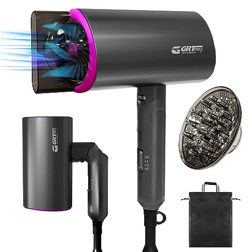 Asciugacapelli da Viaggio Ionico Pieghevole 2200W Phon per Capelli con Diffusore e Ugelli Hair Dryer, Portatile Riparazione Blu Ray Asciugatura Veloce Lucido e Liscio per Viaggi Casa (grigio)