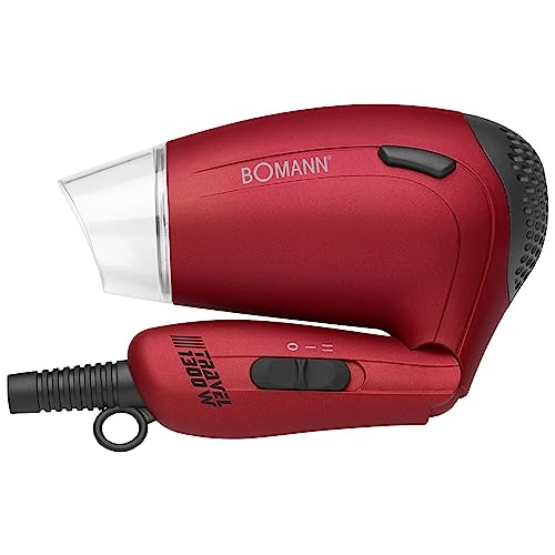Asciugacapelli da viaggio, piccolo pieghevole, con diffusore di volume, asciugacapelli (asciugacapelli, 1200 Watt, 2 livelli, occhiello per appendere, inclusa borsa da viaggio, rosso metallizzato)