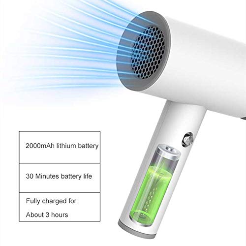 Portatile, compatto da 1250 W: l'asciugacapelli wireless portatile è alimentato a batteria ed è leggero. Il design senza fili consente di leggere le e-mail o camminare liberamente mentre si asciugano i capelli ed è facile da trasportare. Perfetto per la casa, l'escursionismo, i viaggi, il campeggio all'aperto e l'asciugatura del butano dell'acquerello, ecc.