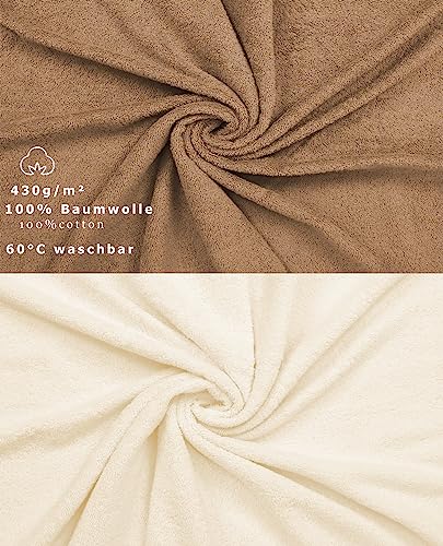 Set di 8 Asciugamani da Bagno Deluxe, Colore: Marrone Moka e Crema, 2 Asciugamani da Bagno, 2 Asciugamani da Doccia, 2 Asciugamani e 2 Lavette, qualità 430 g/m²