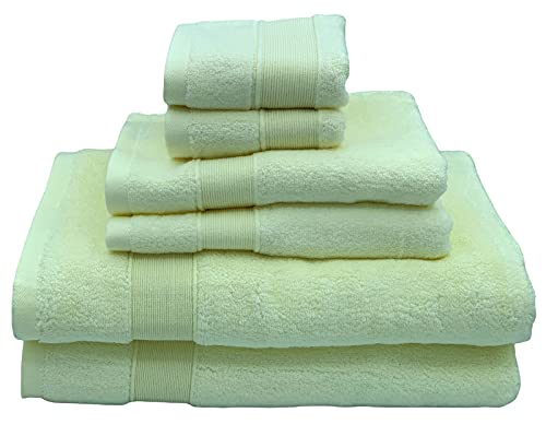 Set di 6 asciugamani, 2 asciugamani da bagno 70 x 140 cm, 2 asciugamani da mani 35 x 75 cm e 2 asciugamani di viso 35 x 35 cm, 100% cotone (beige chiaro)