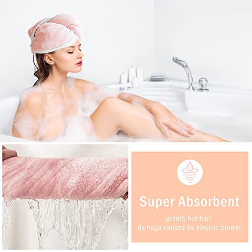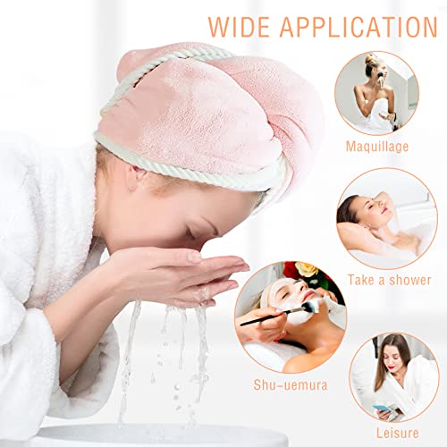 Asciugamani Capelli a Turbante Asciugamani in Microfibra Cappuccio per Capelli Secchi Super Assorbente Asciugamano per asciugare i Capelli con Chiusura a BottoneAsciugatura Rapida per Capelli Bagnati