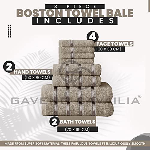 Set di 8 asciugamani in cotone egiziano, ad asciugatura rapida, ad alta assorbenza, colore: argento (4 asciugamani per il viso + 2 asciugamani + 2 asciugamani + 2 asciugamani da bagno)