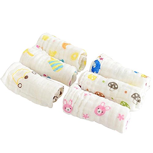 Set di 6 asciugamani, In morbido cotone, Tema: cartoni animati, In cotone mussolina, Con gancio riutilizzabile, Per neonati e pelli sensibili, Colore casuale, Idea regalo