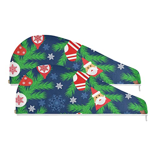 Asciugamani natalizi per asciugare i capelli con Babbo Natale, in microfibra per asciugare i capelli, da donna, confezione da 2 pezzi, con bottoni