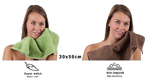 Set di 10 Asciugamani per Ospiti Premium, Colore: Verde Mela e Marrone Noce, Misura: 30 x 50 cm