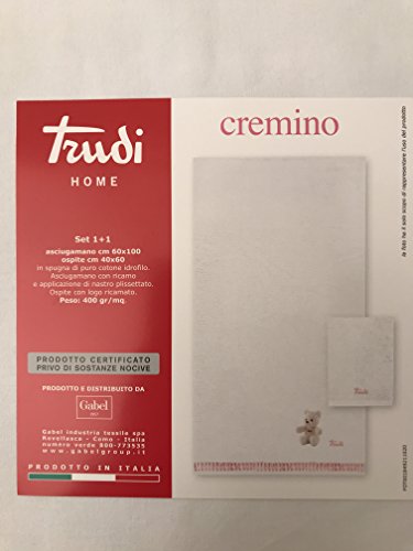 Set Asciugamani 1 +1 Trudi Cremino Bianco Rosa Coppia Asciugamano + Ospite Spugna con Applicazioni e Ricamo Gabel