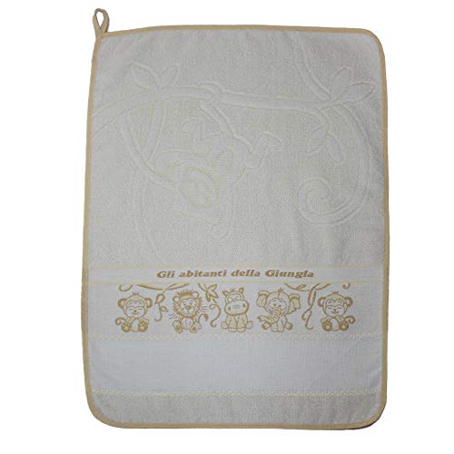 Asciugamanino da ricamare GIUNGLA Asciugamano Asilo cm. 40X52, Asciugamano Bambini in spugna 100% Made in Italy (Ecrù)