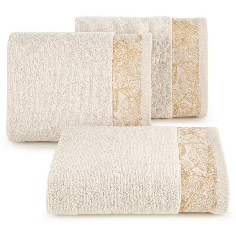 Asciugamano con bordo decorativo jacquard, larghezza: 70 cm, lunghezza: 140 cm, colore: beige, peso: 400 g/m², composizione: 100% cotone;