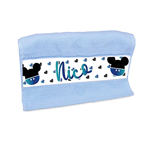 Asciugamano per Bimbo Bimba Personalizzata "Topolino Scarpette" (Azzurro)