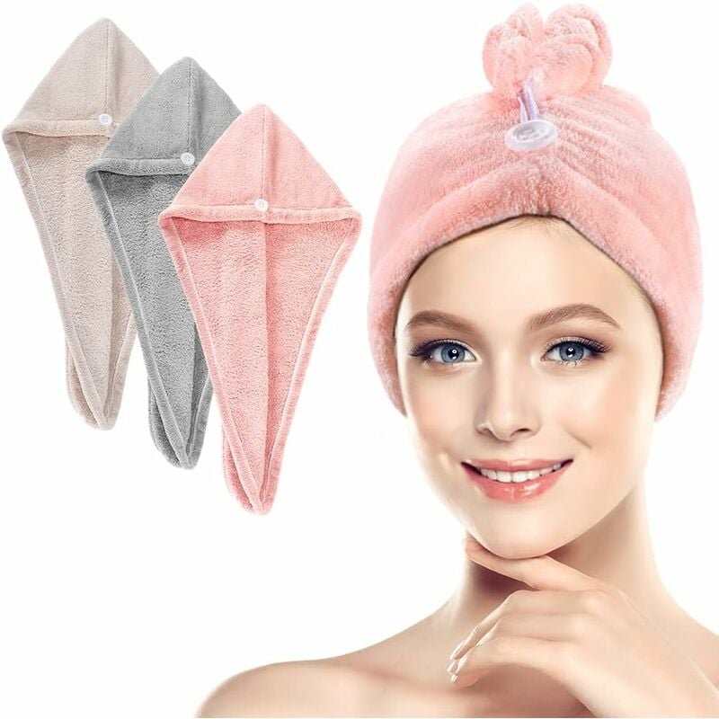 Materiale super assorbente - Questi asciugamani turbante per capelli sono realizzati in spugna super assorbente, specialmente per le persone che si lavano i capelli ogni giorno e non vogliono usare spesso l'asciugacapelli. Proteggi i tuoi capelli】 Dopo aver lavato i capelli, riduci il tempo che passi ad asciugare i capelli, proteggi i capelli dai danni dell'aria calda. Questo turbante per capelli riduce il rischio di doppie punte che possono verificarsi quando si utilizza un asciugacapelli. Queste fasce per capelli riducono anche l'effetto crespo e i danni ai capelli che i prodotti elettrici possono produrre. 【Design sicuro e unico】 Il design del cappello con un bottone di sicurezza e una fibbia impedisce che si sfilacci. questa cuffia per asciugacapelli può avvolgere saldamente la cuffia per capelli, anche i capelli sono lunghi e folti, le cuffie per il lavaggio dei capelli asciutti non cadranno, Facile da usare, mantiene l'involucro dell'asciugamano per capelli in posizione con il
