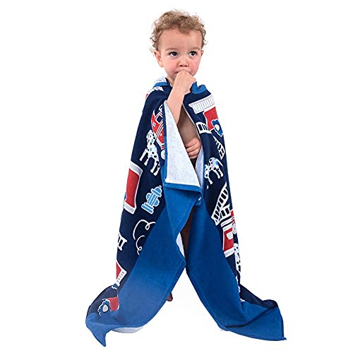 Asciugamano con cappuccio Poncho Bagno Bambini Accappatoio in cotone Spiaggia Nuoto per ragazze Ragazzi Baby (Camion dei Pompieri)