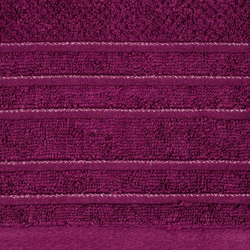 Asciugamano da bagno classico realizzato in tessuto di cotone assorbente con trama in spugna. Bordo minimalista in velluto con aggiunta di filo metallico lucido. larghezza: 50 cm, lunghezza: 90 cm, colore: amaranto, peso: 500 g/m², composizione: 100% cotone;