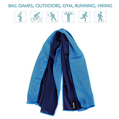 Asciugamano istantaneo di raffreddamento Asciugamano freddo del ghiaccio - Asciugamani estremamente raffreddanti di Microfibra di GreForest Ultra soffici, respirabili per sport, palestra, golf, yoga, corsa, campeggio, viaggi, cucina, febbre (blu, 39x12 in)
