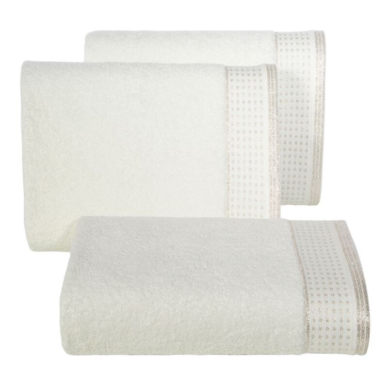 Un morbido asciugamano in spugna di cotone con elevate proprietà assorbenti ti asciuga a fondo e delicatamente dopo il bagno. Il bordo con l'aggiunta di filo metallico brilla leggermente. larghezza: 30 cm, lunghezza: 50 cm, colore: crema, peso: 500 g/m², composizione: 100% cotone;