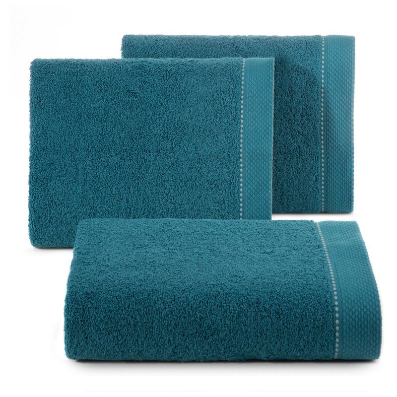 Asciugamano con cucitura a contrasto sul bordo larghezza: 30 cm, lunghezza: 50 cm, colore: turchese, peso: 500 g/mq, composizione: 100% cotone;