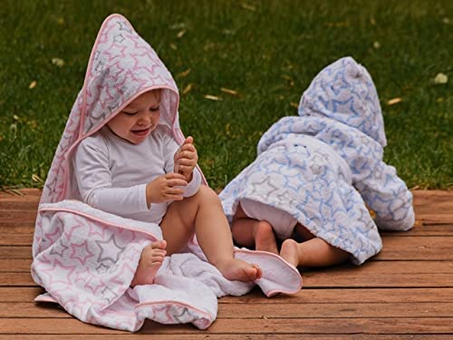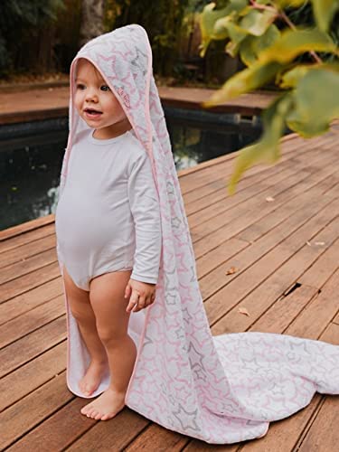 Ti TIN Asciugamano Per Neonati con Cappuccio 100% Cotone | Asciugamano Per Bambini con Cappuccio Morbido e Assorbente con Disegno Di Stelline Rosa, 100x100 cm