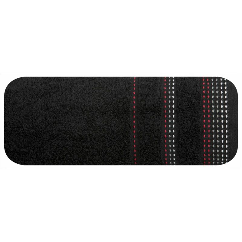 Un asciugamano in tinta unita realizzato in morbido e assorbente tessuto di cotone con armatura a spugna, decorato con un colorato bordo stile imbastitura. Facile da lavare, non tinge. larghezza: 50 cm, lunghezza: 90 cm, colore: nero, peso: 500 GSM, composizione: 100% cotone