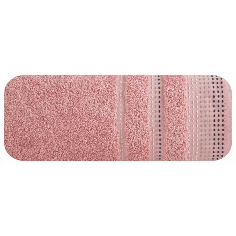 Un asciugamano in tinta unita realizzato in morbido e assorbente tessuto di cotone con armatura a spugna, decorato con un colorato bordo stile imbastitura. Facile da lavare, non tinge. larghezza: 50 cm, lunghezza: 90 cm, colore: cipria, peso: 500 g/m², composizione: 100% cotone