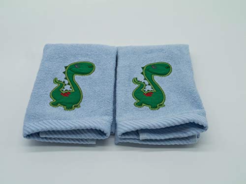 Asciugamano ricamato per bambini, 100% cotone, Blue Dinosaur, Face Flannel