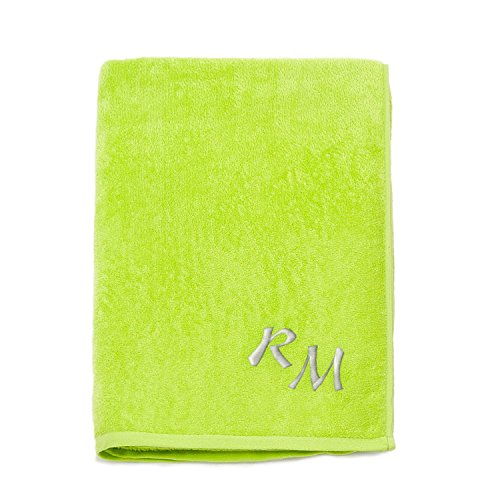 Asciugamano da spiaggia grande, 100% cotone, con monogramma ricamato (personalizzabile), 100% Cotone, Green, 100cm x 180cm (39" x 71")
