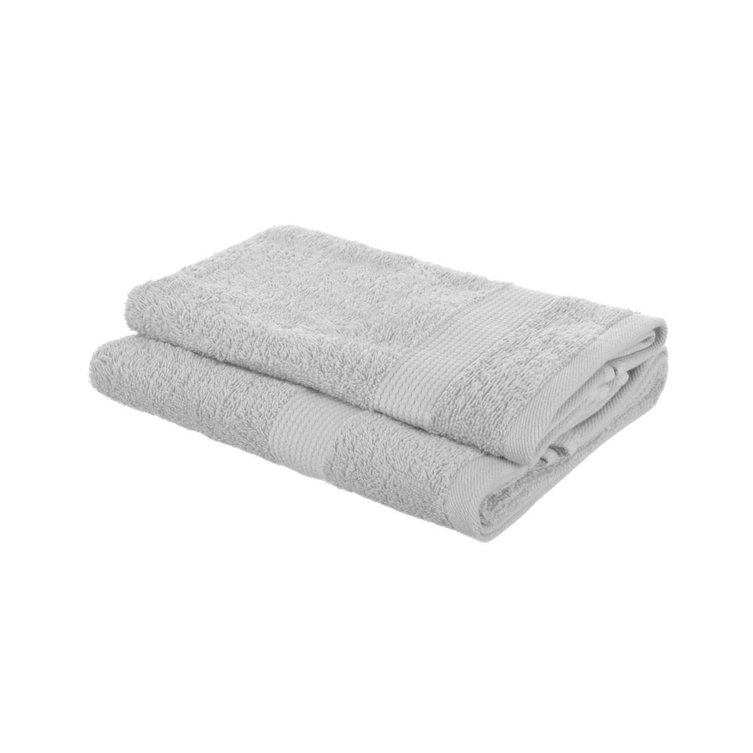 Completa il tuo bagno con piccoli dettagli dal colore neutro ed elegante con questa coppia di morbidi asciugamani in spugna grigia. Il set coordinato si compone di asciugamano viso 50x100 cm e di asciugamano ospite 40x50 cm, belli da appendere a vista accanto al lavandino e all'accappatoio. Gli asciugamani bagno sono realizzati in 100% cotone con lavorazione Dobby del tessuto e grammatura 450 gr/mq. Lavabili a 40°.