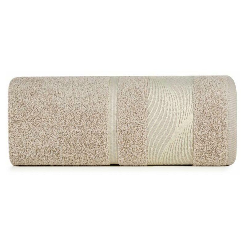 Elegante telo bagno realizzato in morbida ed assorbente spugna di cotone, decorato con un bordo jacquard con motivo floreale in tinta. Molto morbido e piacevole larghezza: 50 cm, lunghezza: 90 cm, colore: beige, peso: 500 GSM, composizione: 100% cotone;