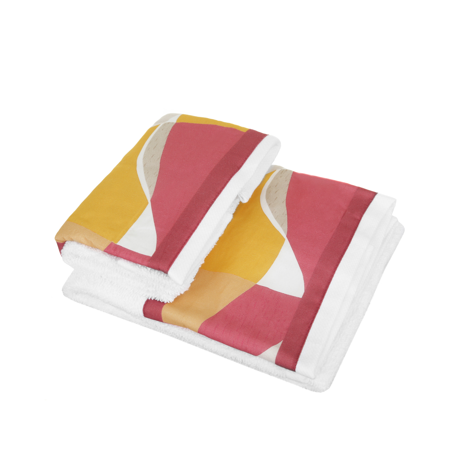Aggiungi una nota di colore e un tocco di morbidezza in bagno con questo set tessile coordinato. Il decoro astratto corallo a balza che caratterizza asciugamano ospite e viso starà benissimo nella tua stanza da bagno. Il set in 100% cotone è composto da asciugamano ospite con dimensione 36x56 cm e quello viso con dimensione 53x96 cm. Grammatura: 500 gsm. Lavabili in lavatrice con ciclo a 30°.