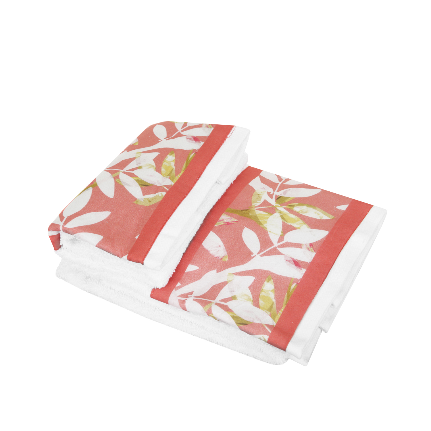 Aggiungi una nota di colore e un tocco di morbidezza in bagno con questo set tessile coordinato. Il decoro naturale corallo con foglie che caratterizza asciugamano ospite e viso starà benissimo nella tua stanza da bagno. Il set in 100% cotone è composto da asciugamano ospite con dimensione 36x56 cm e quello viso con dimensione 53x96 cm. Grammatura: 500 gsm. Lavabili in lavatrice con ciclo a 30°.