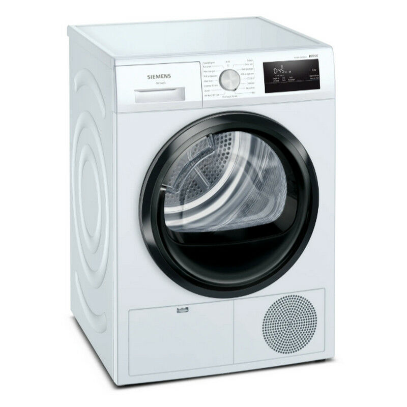 Asciugatrice a pompa di calore iQ300 Siemens WT45H001FR economica ed efficiente: classe energetica A+. Schermo LED: visualizzazione chiara delle informazioni relative al ciclo di asciugatura e facile da usare. autoDry: asciugatura precisa e delicata che preserva i tuoi capi. Programma Outdoor: asciuga i tuoi indumenti impermeabili e tecnici senza danneggiarli. Filtro easyClean per una facile pulizia del filtro del condensatore. Programma Express: 2Kg di bucato asciugato in 40 minuti. Tipo di prodotto: asciugatrice a pompa di calore. Filtro anti-pelucchi easyClean davanti al condensatore. Classe di efficienza energetica: A+. Consumo energetico annuo per 160 cicli di asciugatura: 270 kW/anno. Capacità: 1 - 8 kg. Durata del programma: 226 minuti. Livello di rumore: 65 dB (A) re 1 pW. Classe efficienza condensazione: B. Efficienza di condensazione: 81%. Fusto in acciaio inox da 112 l, fusto softDry. Design antivibrante: stabilità e silenzio. Anta in vetro con telaio nero-nero. Programmi
