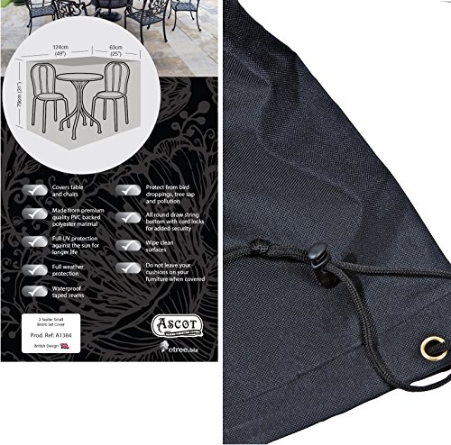 Ascot A1384 2 places-S Housse de protection pour table de bistrot argent qualité, Polyester, Noir