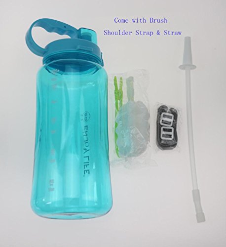 ASeeker 2l Bpa-Privo Bottiglie d' Acqua Portatile Ampia Bocca Grande capacità Bottiglia d' Acqua a Tenuta Spazio Tazza da Viaggio Campeggio Tazze con Tracolla, Paglia E Spazzola di Pulizia