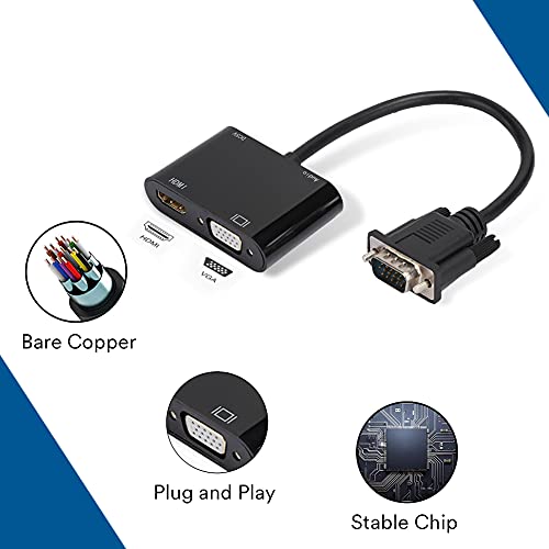 Convertitore VGA Universale 2 in 1-- L'adattatore compatto da VGA a HDMI / VGA può offrirti più comodità nella tua vita quotidiana, ad esempio, puoi mettere questo adattatore VGA in tasca o in tasca per fare presentazioni aziendali con il tuo laptop e proiettore o estendi lo schermo del desktop a un monitor