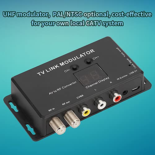 ASHATA Modulatore UHF, modulatore TMH UHF TV Link Convertitore AV in RF Extender IR con Display Canale, Supporto PALcon Cavo di Ricarica USB per PC Portatile Xbox PS4 TV PS3 TV STB VHS Videoregi