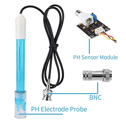 KIT DI MISURAZIONE PH: Il modulo sensore PH è collegato all'elettrodo composto PH tramite la connessione BNC, intervallo di tensione di uscita 0-5 V, facile da usare, alta precisione di misurazione. L'elettrodo composito PH ha un'apertura di dosaggio sulla camicia dell'elettrodo. In caso di perdita della soluzione di riferimento esterna dell'elettrodo, l'apertura di dosaggio può essere aperta per riempire la soluzione di KCl