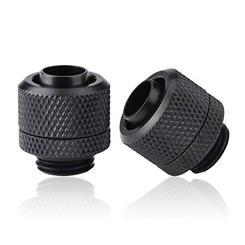 ASHATA Raccordo a Compressione per Raffreddamento ad Acqua Raccordo a Tubo Flessibile in Ottone 2 Pezzi G1 / 4 Raccordo a Due tocchi per PC Raffreddamento ad Acqua(Nero)