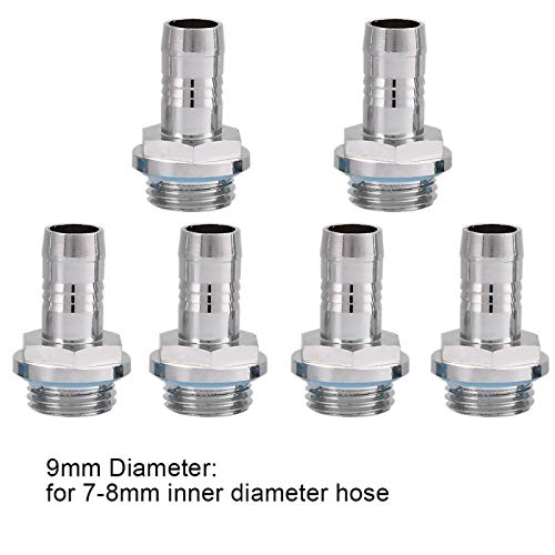 ASHATA Raccordo per Raffreddamento ad Acqua, 6 PCS Raccordo a Due Tempi per Raffreddamento ad Acqua G1 / 4 Filettatura Raccordo per Tubo(9 mm)