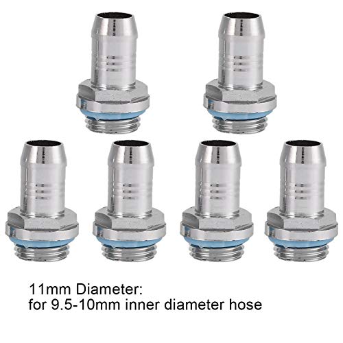 ASHATA Raccordo per Raffreddamento ad Acqua, 6 PCS Raccordo a Due Tempi per Raffreddamento ad Acqua G1 / 4 Filettatura Raccordo per Tubo(11 mm)
