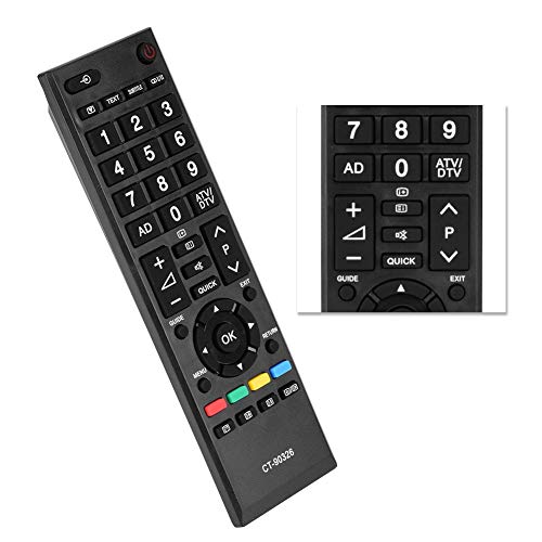 ASHATA Telecomando TV di Ricambio, Telecomando TV Multifunzione per Toshiba TV CT-90380, CT-90336, CT-90351 - Nero
