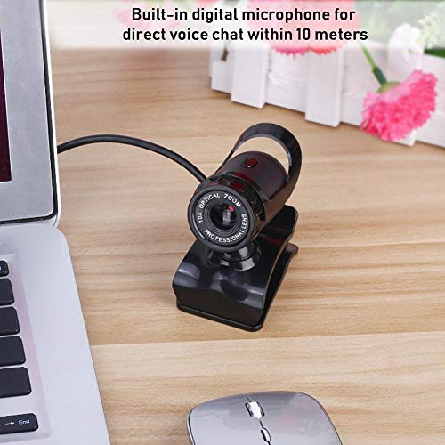 ASHATA Videocamera USB HD, Computer USB Videocamera per PC Nero, Microfono Digitale Incorporato ad Alta Definizione a 360 ° con Base a Clip Forniture per Computer per Cerimonie, Festival