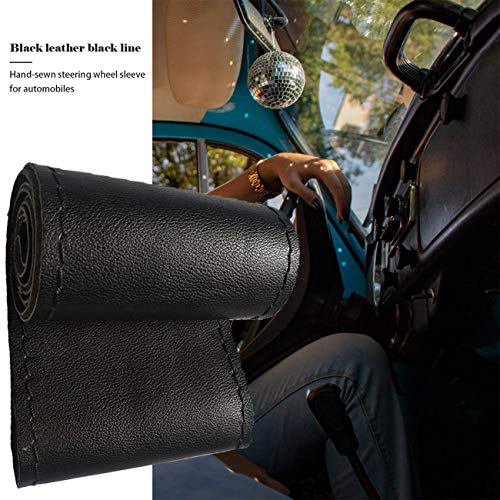 Ashley GAO - Coprivolante da auto per cucire a mano, in microfibra, con manico in pelle e quattro lati, morbido e antiscivolo, accessori per auto