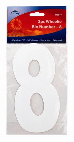 Ashley WS518 - Numeri autoadesivi, per cestino spazzatura / bidone con ruote, 17 cm, 2 confezioni, numero 8, colore: bianco