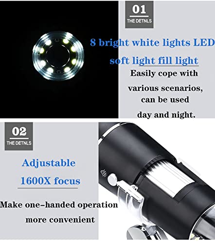ASHLGQB USB Microscopio Digitale, Microscopio Portatile, Microscopio per Elettronica, Ingrandimento Endoscopio con Supporto, Microscopio Ottico con Luce a 8 LED 1600X