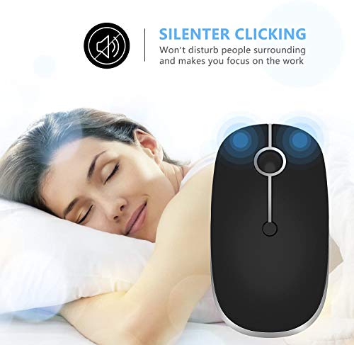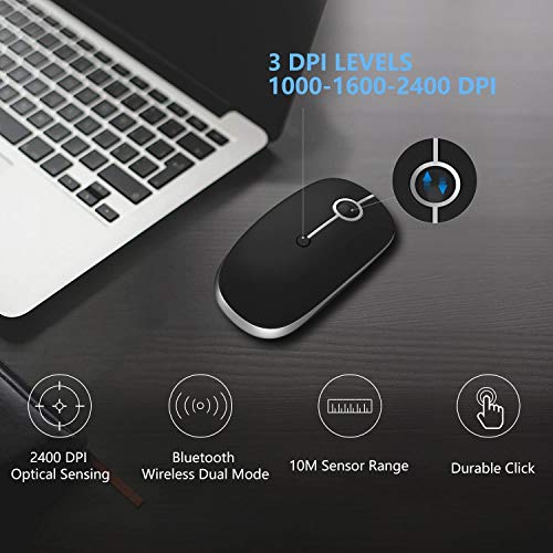 ASHU Mouse Bluetooth wireless, multi dispositivo 2.4G USB e Bluetooth 4.0, mouse 1000-1600-2400 DPI regolabile, mouse ottici silenziosi per iPad, Mac, computer portatili, PC, tablet, nero e argento