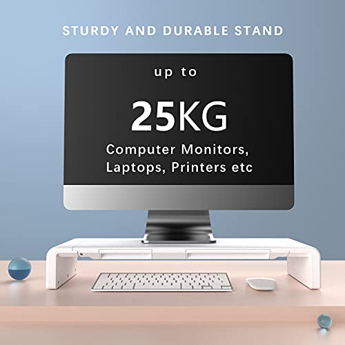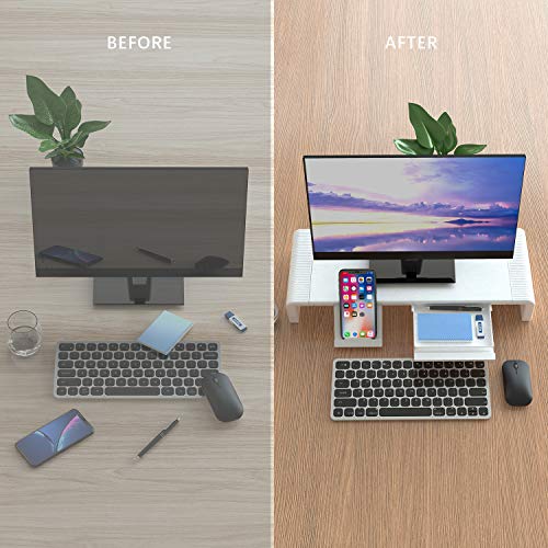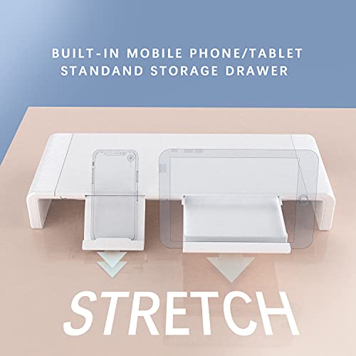 ASHU Supporto schermo per PC, alzatore monitor pieghevole, lunghezza regolabile con cassetto piccolo e organizer per computer/stampante, televisione/tablet, bianco