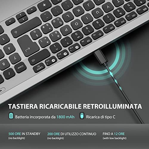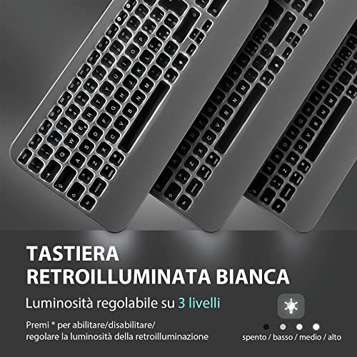 ASHU Tastiera illuminata Wireless per Sistema Mac, Layout Italiano QWERTY, Tastiera Retroilluminata Ricaricabile, Full Size, USB, Ergonomico, Tastiera per iMac/Macbook/Mac OS/Ipad, Grigio